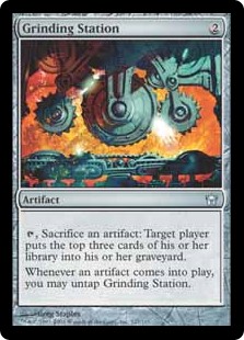 In the event that we get stomped by graveyard hate, we got another way to win via Grinding Station. We will pick ‘Mirran’ from Mirrodin Besiege and start churning out 1/1 Myrs that will feed and reset the Grinding station and mill our opponent out. It’s not difficult to get 10 or more activation from this across very few turns.