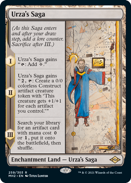 Another card that will significantly boost the power of this deck is Urza’s Saga. It comes to play untapped, it gives you a threat that grows bigger as the game goes, and eventually fetches you another artifact to crack. $40 is a big spend for a fun deck but heck, if you got this already lying around, then go ahead and chuck four copes in and replace four islands.