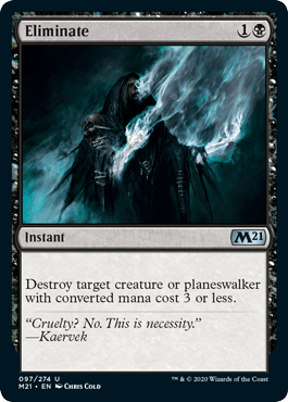 For our removal, Fatal Push was a no-brainer addition because it answers a lot of early to mid-game targets when faced with any creature-based decks. Eliminate has been a very underrated removal spell despite having the capability to kill very large threats like Steel Leaf Champion and Old-Growth Troll, to killing Narset or Kiora. Hero’s Downfall is your catch-all answer that’s non-conditional and at instant speed.