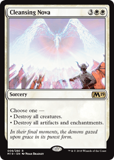 Harmless Offering together with Cleansing Nova and Farewell brings the comedy into Pioneer and we can successfully pull this off on turn 5 when you cast Nine Lives on turn 3, Offering on turn 4, and Nova on turn 5. Funny, right?