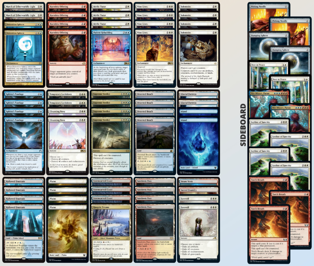 (0-0-1) Round 1 – Draw vs. Indomitable Creativity. Essentially I had my opponent locked but couldn’t find my win con fast enough, and the Offering combo got Disdainful Stroke when I cast Nova on the last 5th turn on Game 3.