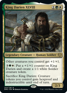 Go-wide decks need enough punch to get through bigger creatures. We have a lot of options under the price range of Wedding Announcement. Intrepid Adversary($2.0), King Darien($0.60), and Jetmir($4) are all really good options that provide us more value than anthems. Intrepid trades well early, King Darien is a token generator himself and can give your tokens hexproof and indestructible, and Jetmir gives all sorts of buff, with Trample being the most important. Without further adieu, here’s our Petstore Token Deck for Standard!