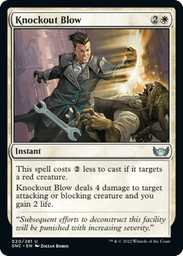 We pack a couple of Disenchant in the sideboards, together with Dreams of Steel and Oil to get around artifacts. Knockout Blow and Parasitic Grasp is in for the early aggression and lifegain to get to our midgame. Sunset Revelry of course deserves a slot especially for other go-wide strategies while we dig for our Depopulate.